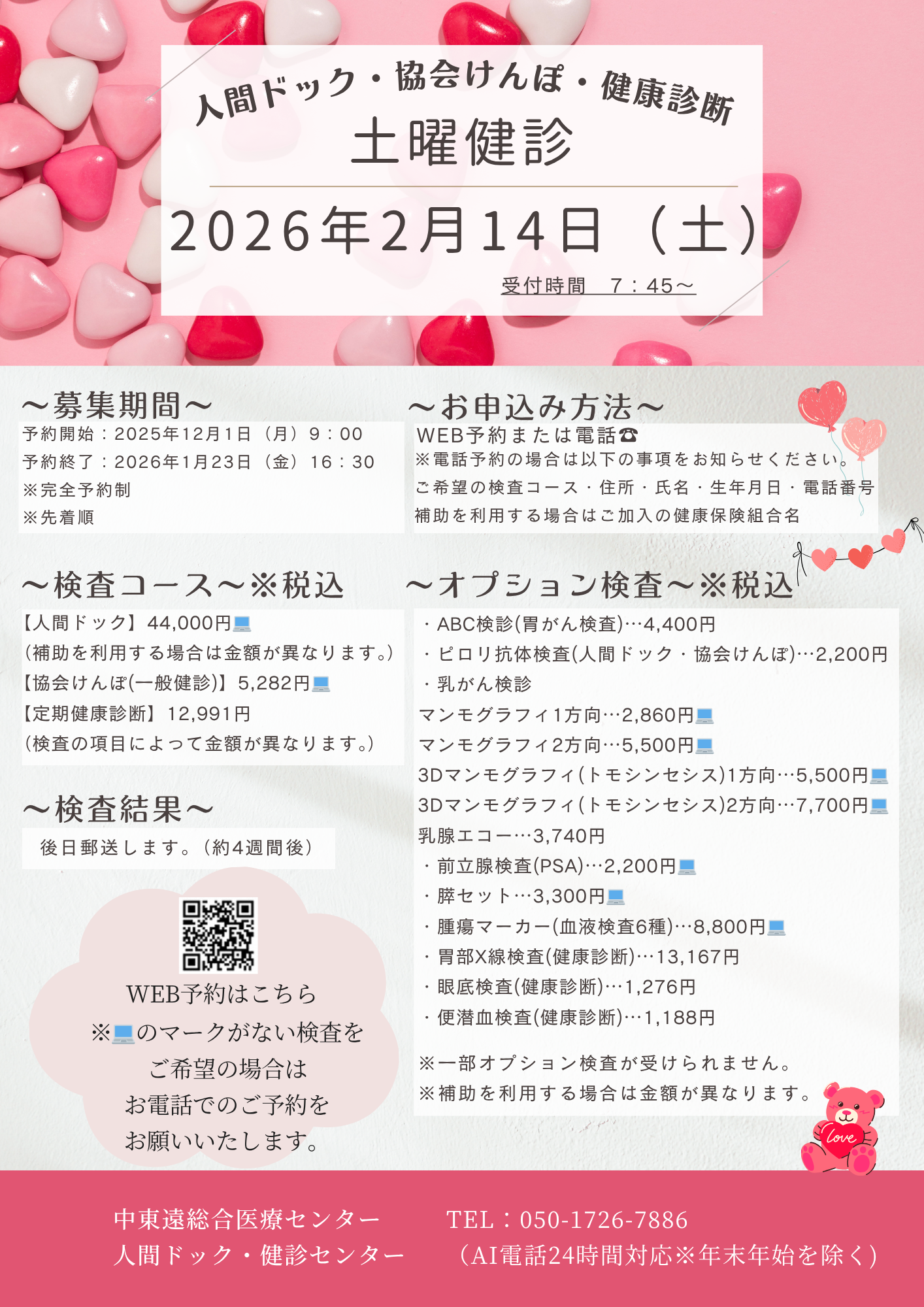 平日はなかなか時間が取れない皆さま、この機会に土曜健診を受けてみませんか?
