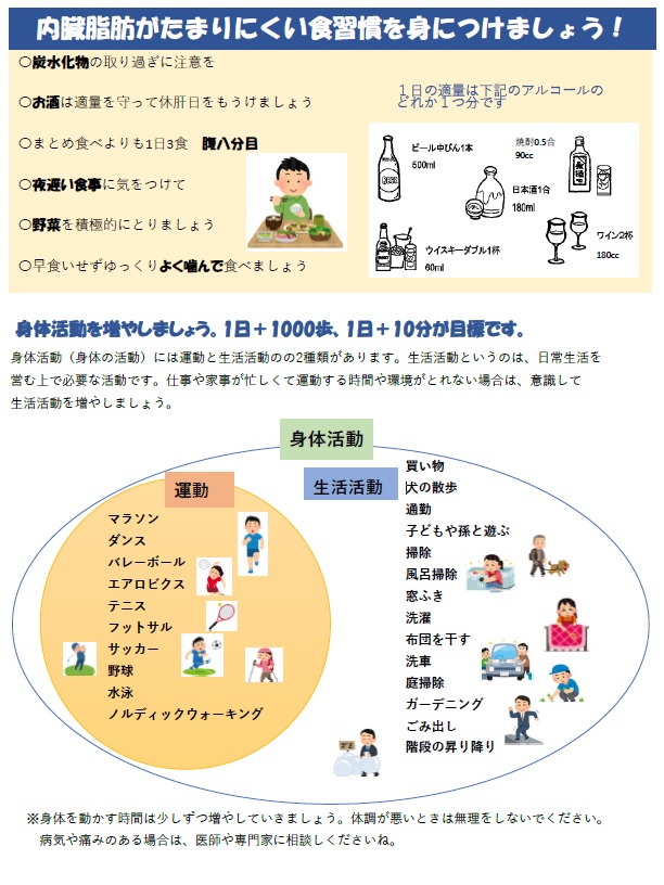 内臓脂肪をためないためには、身体活動を増やすことも重要です。