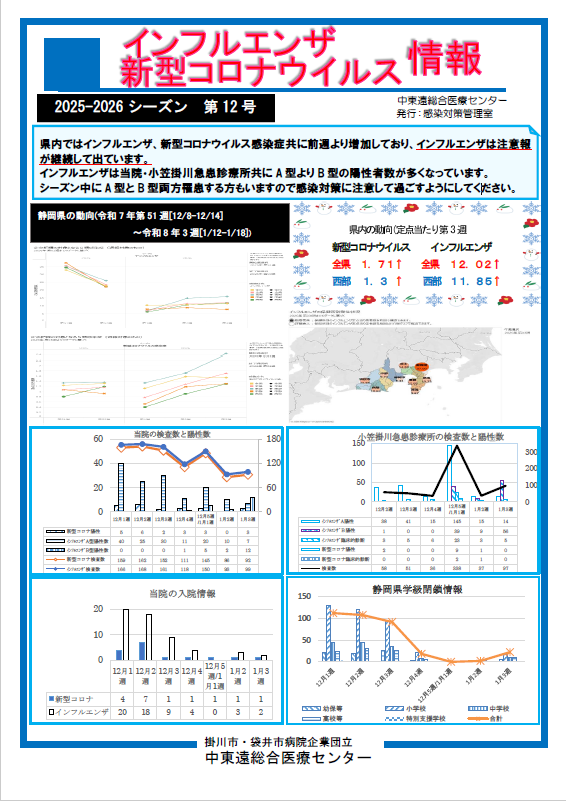 インフルエンザ・新型コロナウイルス情報 インフルエンザ・新型コロナウイルス 2025-2026シーズン 第12号 (PDF ファイル 0.64MB) 前回のインフルエンザ・新型コロナウイルス情報 インフルエンザ・新型コロナウイルス 2025-2026シーズン 第11号 (PDF ファイル 0.65MB)