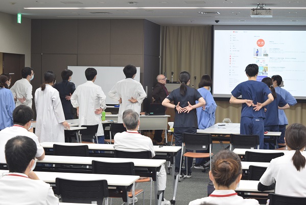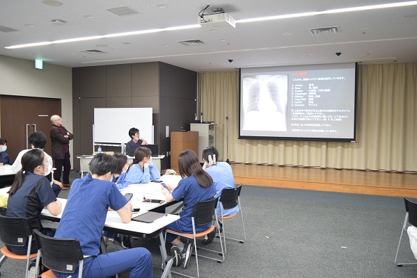 長尾先生の講演後は、当院呼吸器内科森川昇先生によるレントゲン読影クイズを開催しました。研修医は3チームに分かれ、提示された画像の中から異常があると思われる箇所と所見、考えられる疾患について回答し、講演で学んだ内容を実践的に確認しました。