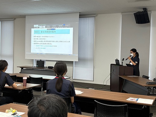 小児科医師による講演のほか、研修医による症例発表も行われています。症例発表は、当院の研修医に限らず他院の研修医も参加しています。
