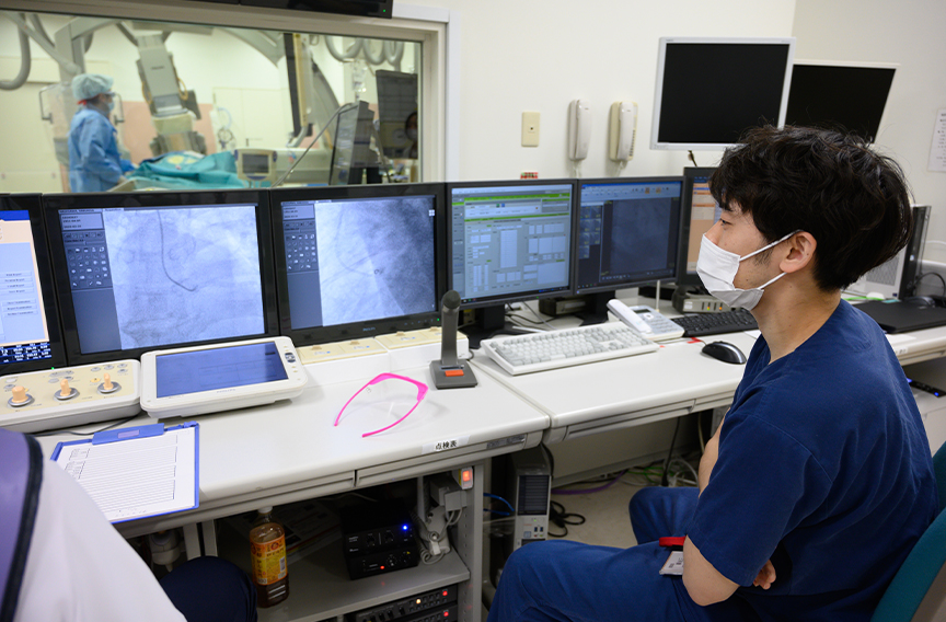 先攻医として残った理由は、生まれ故郷である県西部エリアの地域医療に貢献したいという思いから。あと、初期研修時代から先輩医師や看護師、コメディカル、事務の方まで、本当にたくさんの方々にお世話になり、つねに支えられてきたからです。中東遠独自の研修医育成プログラムと病院全体のすばらしいサポートがあったからこそ、私は今、循環器内科医として仕事ができるまでに成長しました。その恩返しというわけではありませんが、これからも私を育ててくれた当院のために、そして、掛川・袋井を中心とした中東遠エリアの地域医療のために、みんながチームとなって互いをサポートし合い、より良い医療の実現を目指していきたいと考えています。医療は一人では絶対にできませんので、初期研修から続く信頼関係のもとに、ストレスなく医療に従事できることも当院で先攻医となるメリットだと思いましたね。